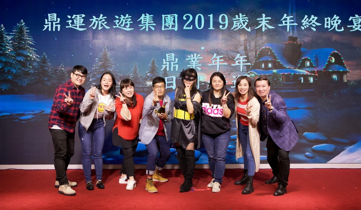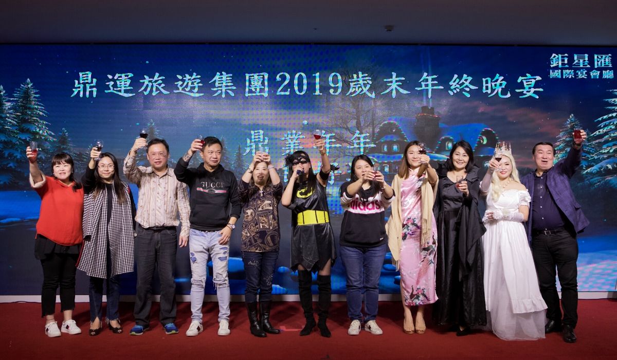 鼎運旅遊集團,2019年尾牙,以【鼎業年年,日日好運 】為主題。集團董事長 陳怡璇感謝勉力集團的所有員工,在2019最不景氣的一年創造出市場驚喜傲人的好成績。當然我們不會因此而自滿,我們必將再接再厲,2020再創佳績。