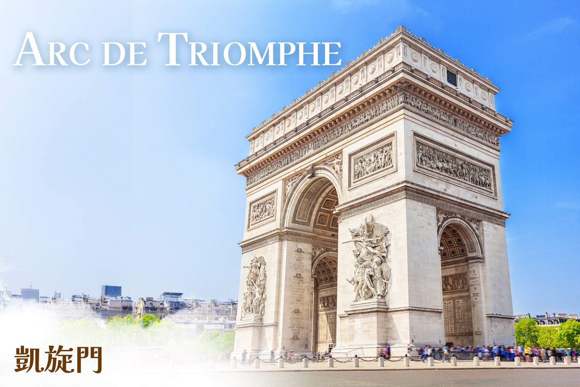 l【巴黎凱旋門】凱旋門由拿破崙一世於1806年下令興建,為紀念法軍在奧斯特里茲戰役的勝利,象徵法蘭西帝國的榮耀與力量。工程歷時30年,拿破崙卻未能親眼見證完工,1840年他的靈柩通過此門,