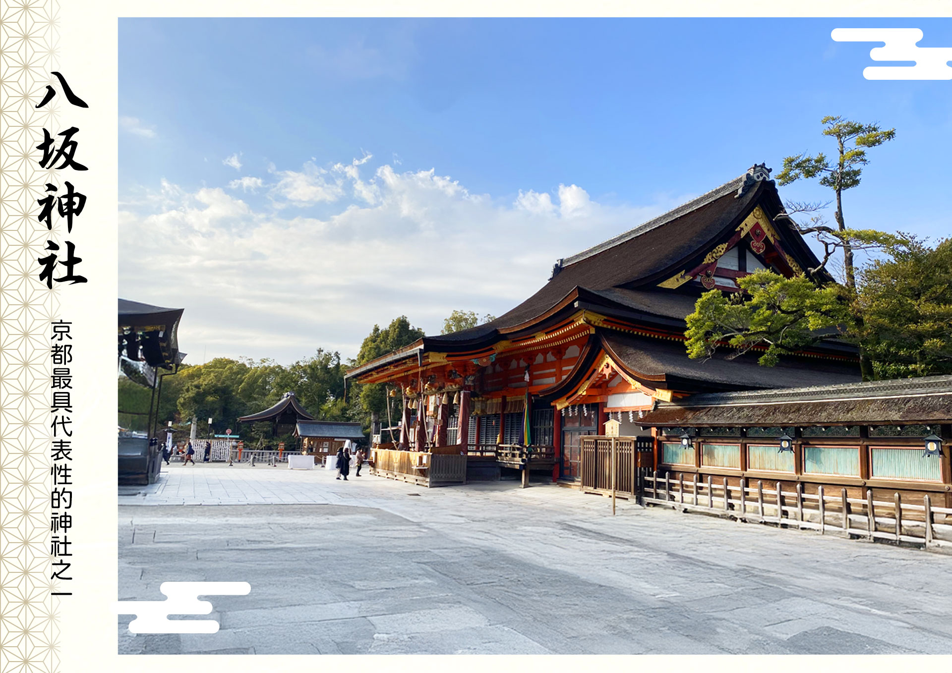 【八坂神社】日本全國約有3,000多間,其位於京都的是八坂神社之總本社,因位於祇園,於是又名祇園神社。總本社位於日本京都府京都市東山區的神社。為二十二社,舊社格為官幣大社。 總本社祇園祭為日本最大的祭典之一,也是在京都香火最旺的神社之一。