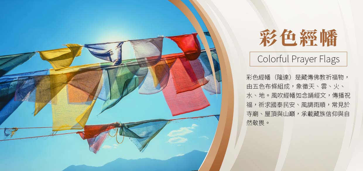 彩色經幡─五色除障旗稱為「天馬旗」,又稱「風馬旗」;藏文譯音為「Lungta」通稱為「經幡」。五色經幡上印有各諸佛菩薩經咒,又稱「佛幡」。懸掛或施放天馬旗的目的可以祈福延壽、消除一切病業、厄運災劫、破解擋煞外來一切魔障,祈求事業順利。