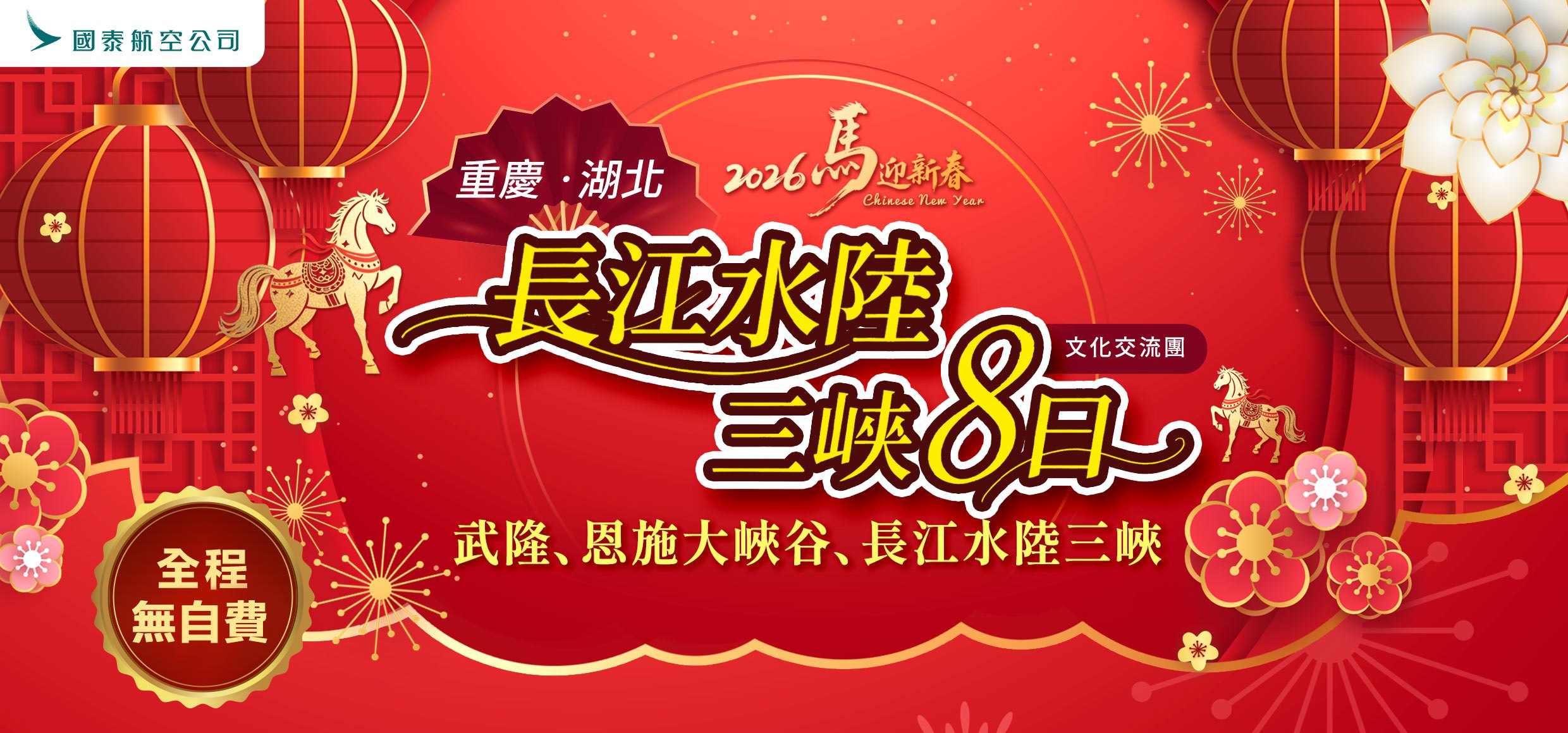 【全球傳奇】馬迎新春武隆、恩施大峽谷、長江水陸三峽精華8日-CX重慶進武漢出